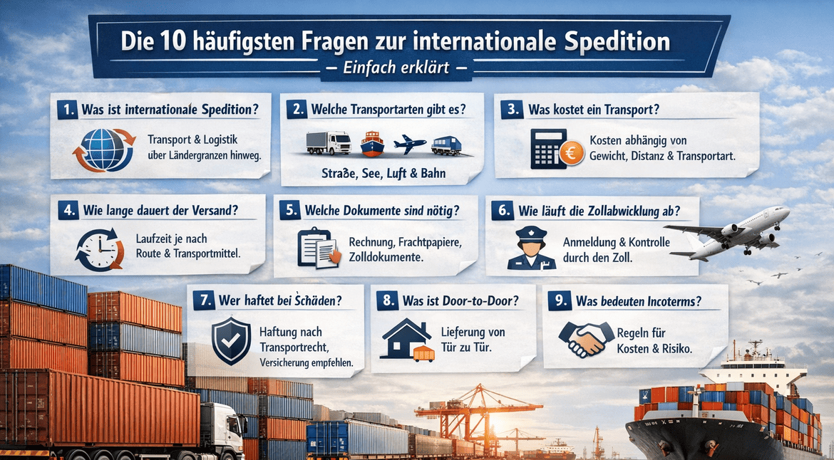 Internationale Transporte wirken auf den ersten Blick komplex. Hier beantworten wir die zehn häufigsten Fragen zur internationalen Spedition